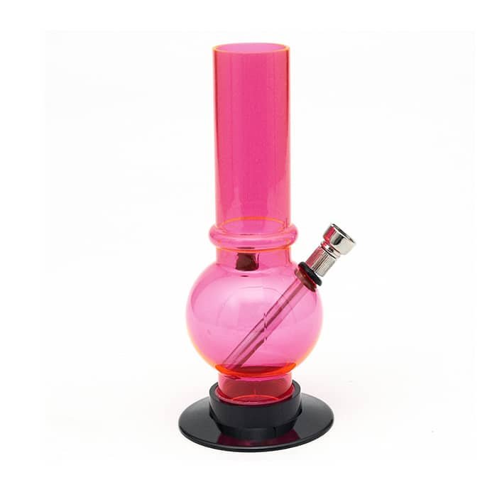 A small, handy acrylic bong with a metal pipe. Convenient for traveling or at home. This bong has a small kick-hole with a rubber gasket and a flexible and removable base for stability and grip.